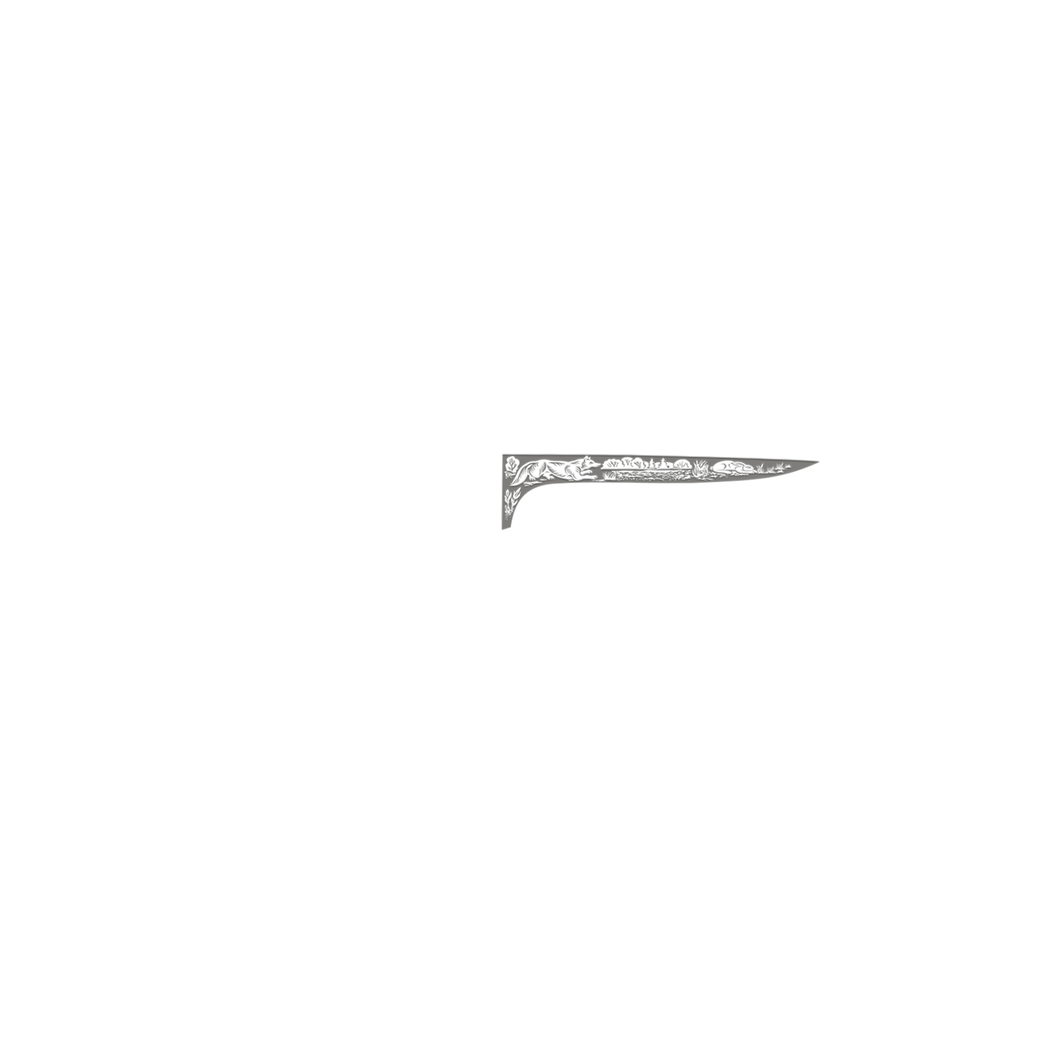 Сравнительно небольшой, универсальный легкий и прочный нож с клинком, имеющим чуть приспущенный к острию обушок. Спуски в виде линзы на большую часть ширины клинка образуют тонкое, изумительно режущее лезвие. Толщина обуха в 2,6 мм позволяет оставить приличную голомень, что придает ему дополнительную прочность. Рукоятка имеет эргономичную форму, что позволяет пользоваться ножом человеку с любым размером ладони. Гарда умеренной величины защищает пальцы при резе. Монтаж рукояти накладной, неразборный. Великолепное решение для тех, кто любит проводить время на природе и вдали от городской суеты. Пользуется неизменной популярностью у покупателей.