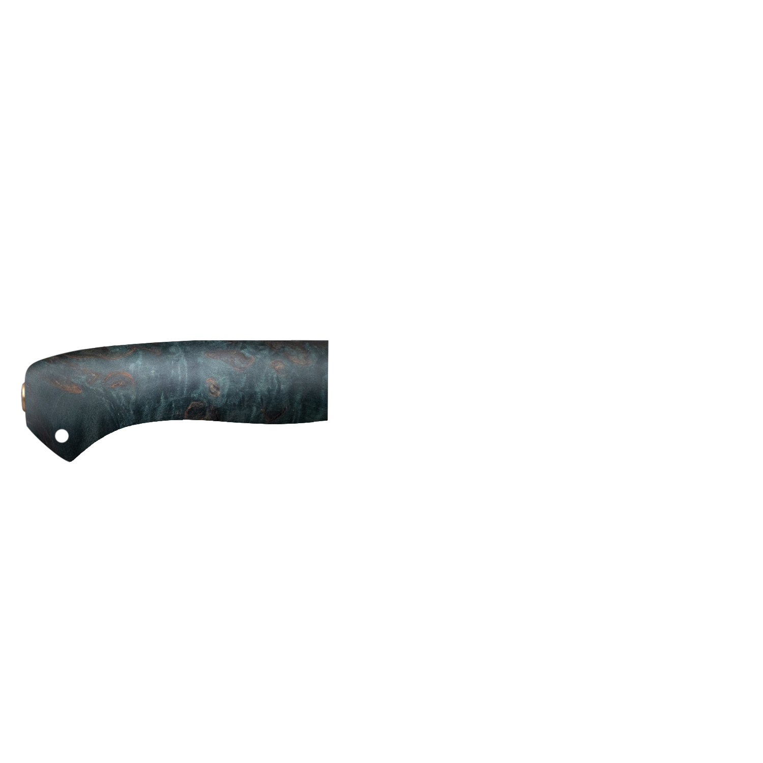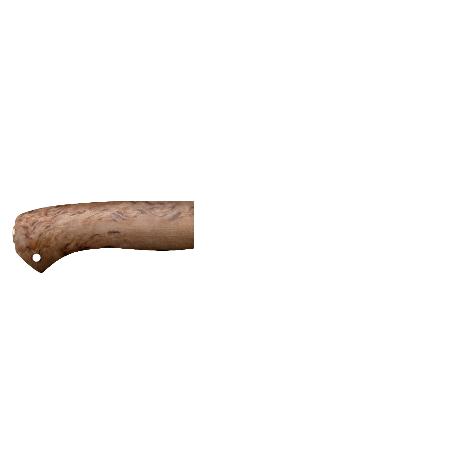 Небольшой универсальный, легкий и прочный нож с клинком ятаганной формы, имеющим вогнутые линзовидные спуски от середины ширины клинка. Клинок с толщиной обуха в 3 мм имеет широкую голомень, что придает ему дополнительную прочность. Удобная форма рукояти позволяет уверенно работать ножом. А пята клинка, заменяющая упор, не дает соскользнуть пальцам при резах от себя. Монтаж рукояти всадной, неразборный. Хороший выбор для большинства видов работы в лесу.