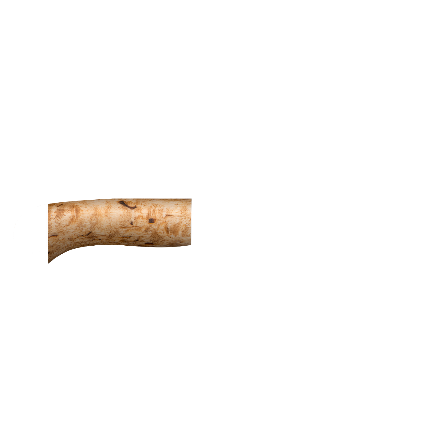 Небольшой универсальный, легкий и прочный нож с клинком ятаганной формы, имеющим вогнутые линзовидные спуски от середины ширины клинка. Клинок с толщиной обуха в 3 мм имеет широкую голомень, что придает ему дополнительную прочность. Удобная форма рукояти позволяет уверенно работать ножом. А пята клинка, заменяющая упор, не дает соскользнуть пальцам при резах от себя. Монтаж рукояти всадной, неразборный. Хороший выбор для большинства видов работы в лесу.