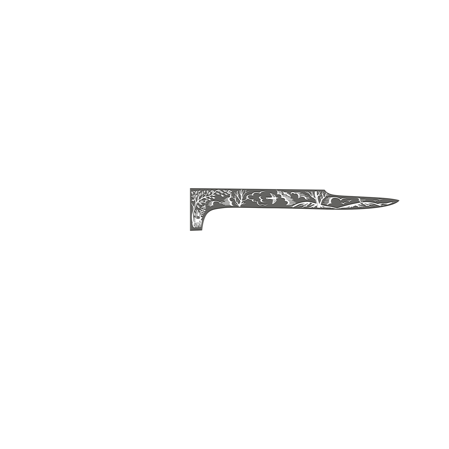 Внушительный нож с огромным клинком ятаганной формы, с толщиной обуха 3 мм. Вогнутые линзовидные спуски образуют тонкое, хорошо режущее лезвие толщиной около 0,7 мм в районе подводов. На обухе клинка, от острия выведено фальшлезвие на длину чуть более одной трети клинка. Рукоять большая, удобной для рубки формы, имеет на навершии отверстие для темляка. Монтаж рукояти сквозной, неразборный. Небольшая подпальцевая выемка не дает соскользнуть руке при резах от себя. Этот нож рекомендуется использовать для рубки веток под колеса застрявшей машины и при обустройстве стоянки.